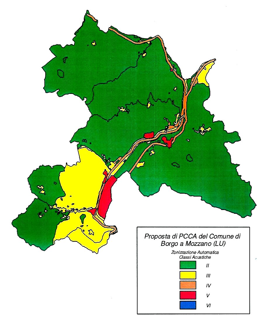 Con la deliberazione di Consiglio Comunale n. 90 del 28 dicembre 2005 il Comune di Borgo a Mozzano ha approvato definitivamente il Piano di classificazione acustica del proprio territorio.