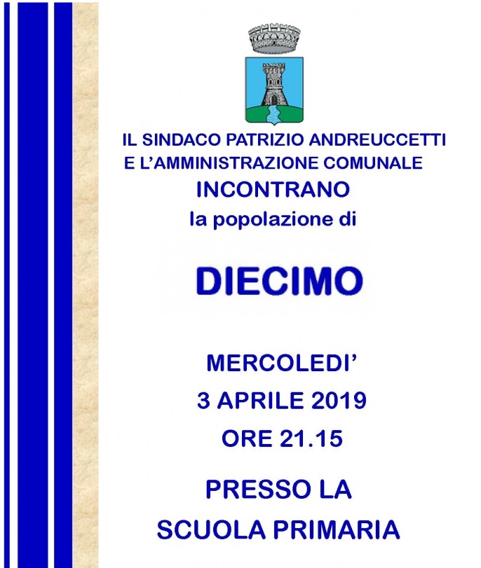 Mercoledì 3 aprile prossimo - alle 21,15 - presso la Scuola Primaria di Diecimo