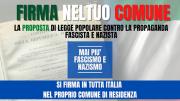Proposta di Legge di iniziativa popolare annunciata sulla G.U. n. 260 del 20/10/2020 «Norme contro la propaganda e la diffusione di messaggi inneggianti a fascismo e nazismo e la vendita e produzione di oggetti con simboli fascisti» - Comitato promotore: Legge Antifascista - scadenza 31 marzo 20213Proposta di Legge di iniziativa popolare «Norme contro la propaganda e la diffusione di messaggi inneggianti a fascismo e nazismo e la vendita e produzione di oggetti con simboli fascisti» - Comitato promotore: Legge Antifascista - Scadenza 31 marzo 2021