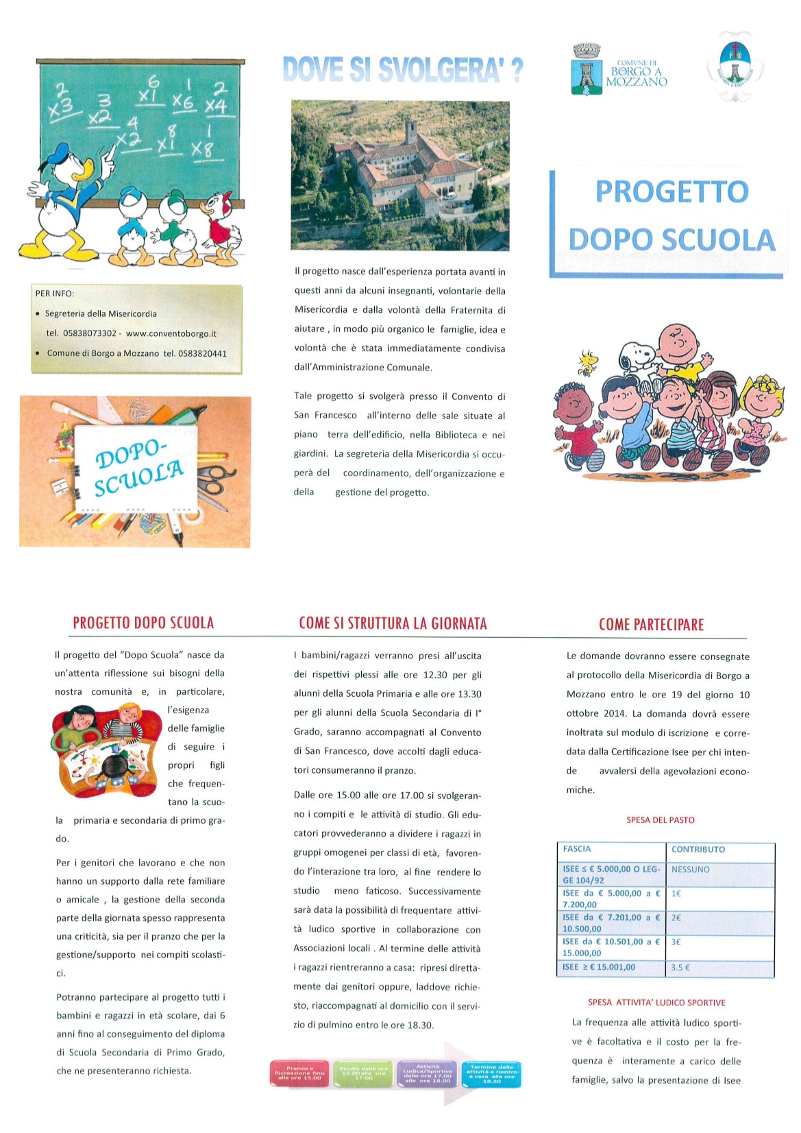Il modulo di iscrizione dovrà essere riconsegnato entro e non oltre il 10/10/2014 alla Segreteria della Misericordia di Borgo a Mozzano.