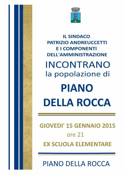 Giovedì 15 gennaio prossimo, alle ore 21, presso l'ex scuola di Piano della Rocca